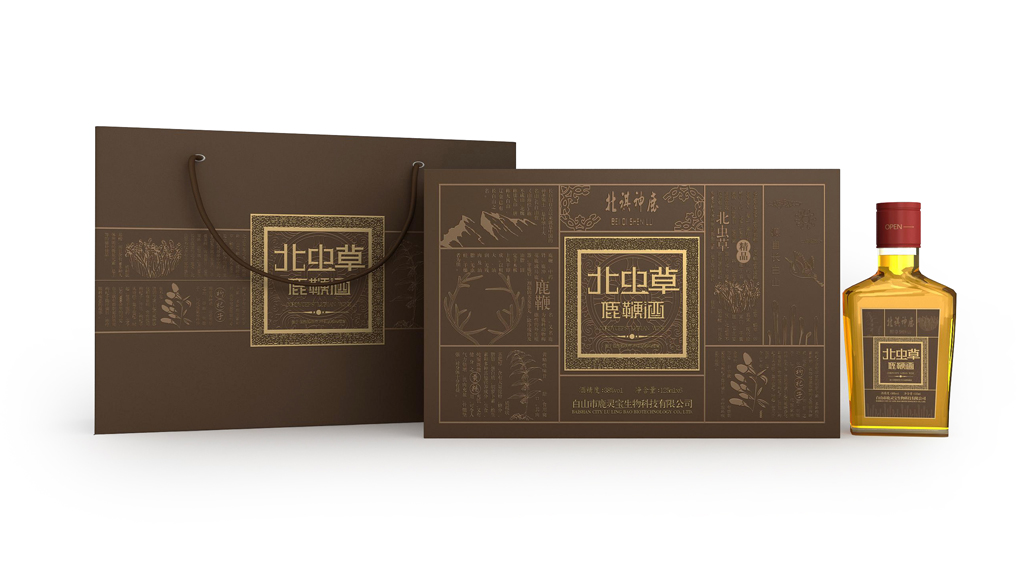 使用红色,带来喜庆的礼品感,底纹加上UV工艺,展现激凸对比质感,烫金的文字更加突出主题,创意长白山插图,浓厚的地域特色。